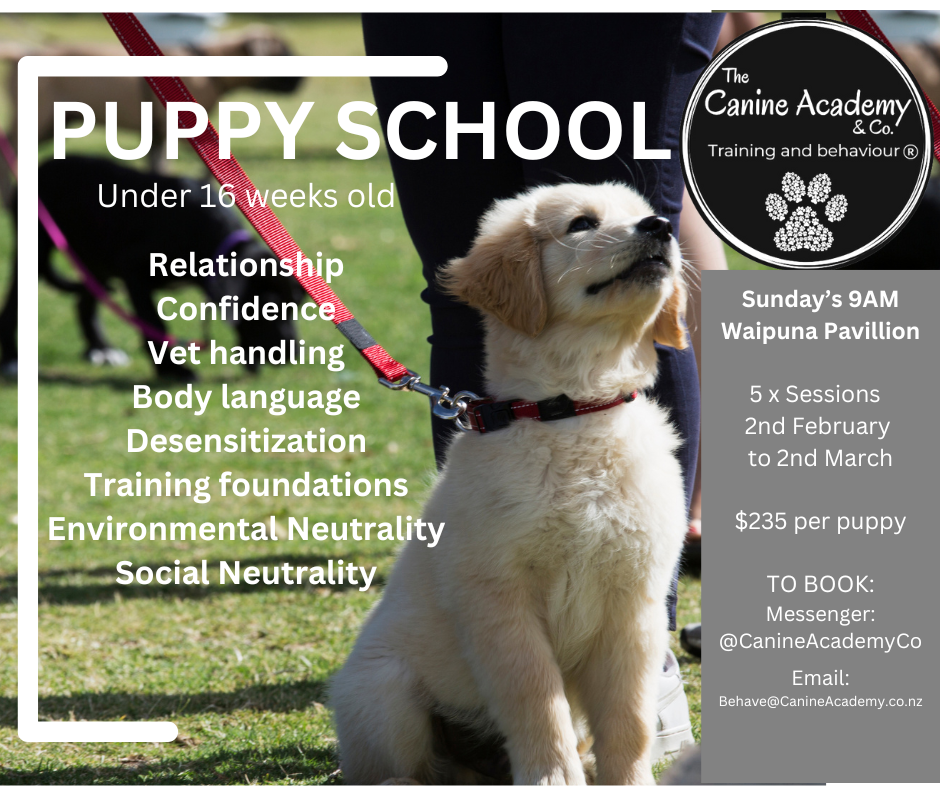 To Book Email - Behave@CanineAcademy.co.nz, see the Contact page on this website or message us on facebook messenger.